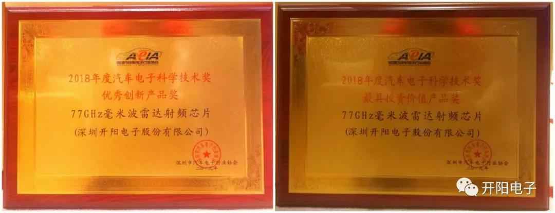 会上,杭州睿智食品生产技术有限公司自主研发的“77GHz毫米波雷达射频芯片”一举获得两项中国汽车电子科学技术奖——“优秀创新产品奖”和“最具投资价值产品奖”。